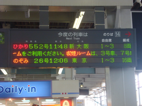 新大阪行きのひかり号に乗って、大阪に戻りました。