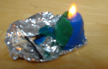 前に夏休みの宿題で作ったロウソクに火を付けてみました。