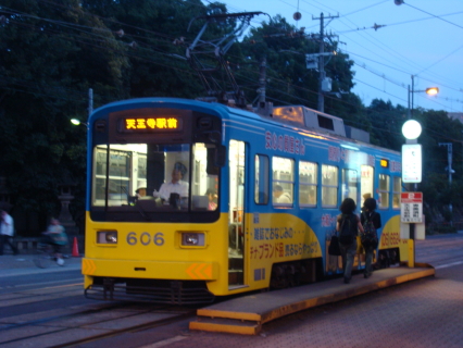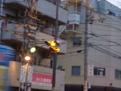 新世界に行く時に、恵比須町駅のところで路面電車を見た事がありましたが、実際に道路の横を走っているのは、大阪で初めて見ました。信号も路面電車が走ると、黄色の矢印が出て、慣れないので間違えそうになりました。やはり、路面電車を見ると癒されますね。