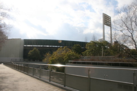 入り口は、白く覆われていたので、見る事が出来ませんでしたが、裏側(外野側)の球場の外側の壁は見る事が出来ました。