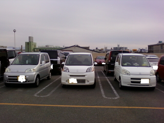 駐車場に停めて、買い物に出かけて、1時間ほどして戻ると、私の停めていた車の両端もライフが停まっていました。