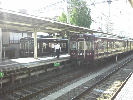 淡路駅で電車を待っていると、天下茶屋行きと梅田行きの普通が来ました。