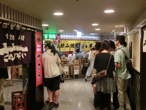 お昼時ということもあり、駅ビル内のお好み焼き屋さんはたくさんの人が並んでいました。