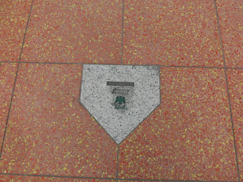 難波パークスに入るまでに大阪球場のベースの石があります。